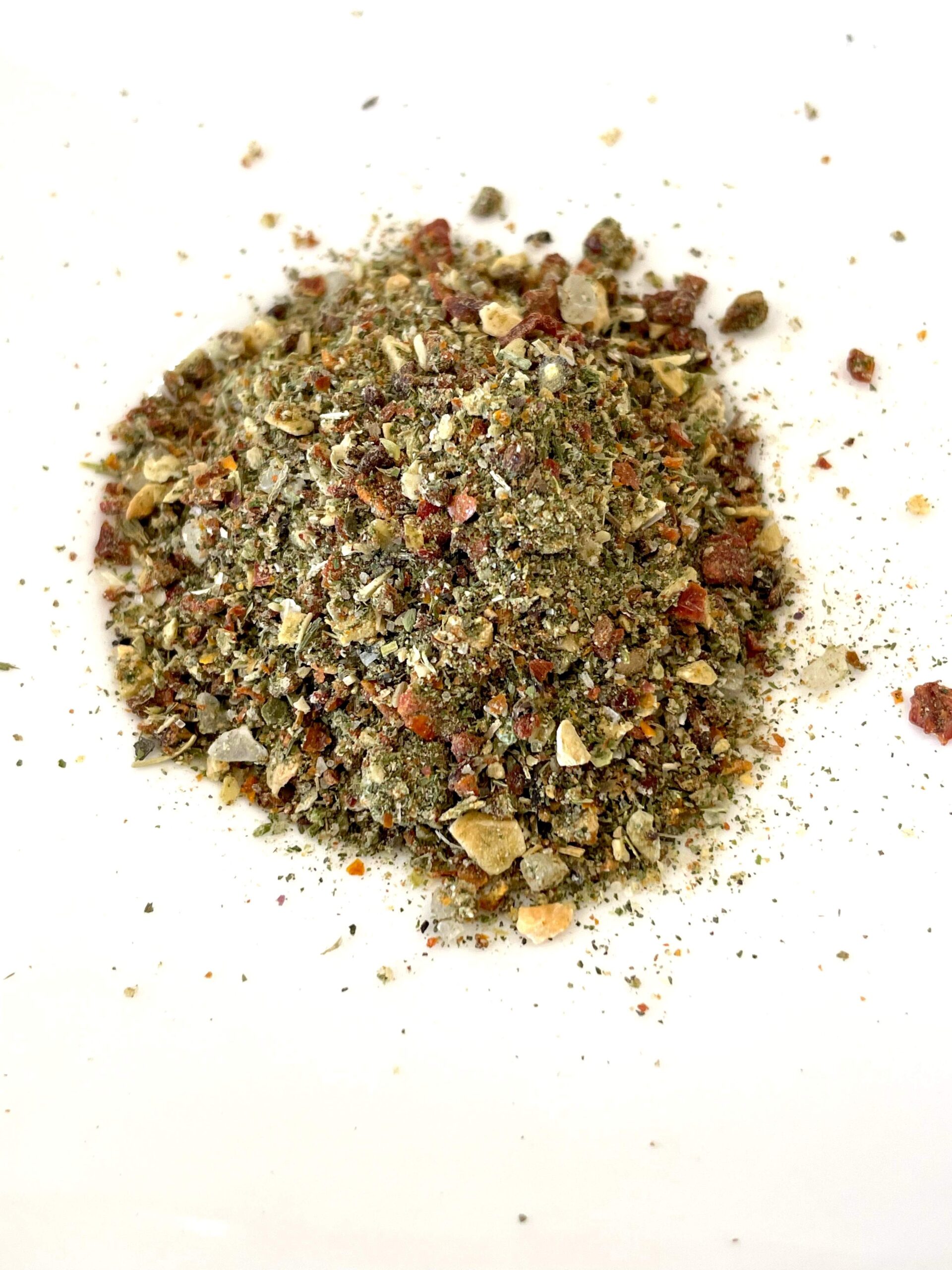 Zutaten: Gewürze, (Tomatenflocken, Ingwer, Habanero Chili, Petersilie,Knoblauch, SELLERIE, Zwiebel, Oregano, Basilikum, Thymian, Olivenkraut,Paprika rosenscharf, Lauch, Cumin, Schokoladen Pfeffer), Steinsalz