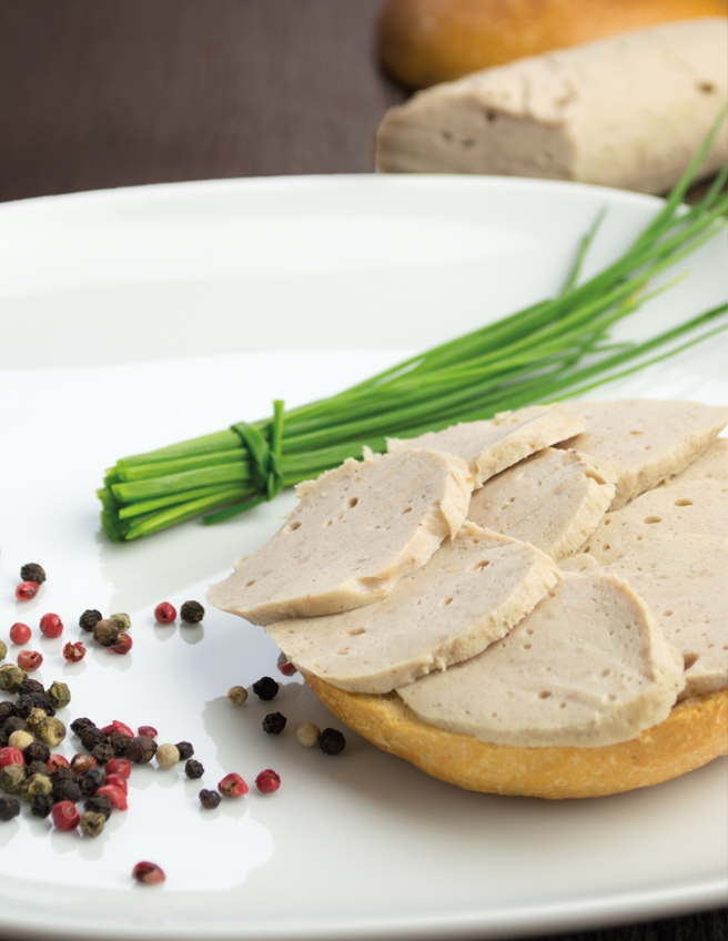 Für Aufschnittwurst (Brühwurst) wird das Brät entweder mithilfe einer Folie zu einer Rolle gepresst oder in ein Einmachglas gefüllt.