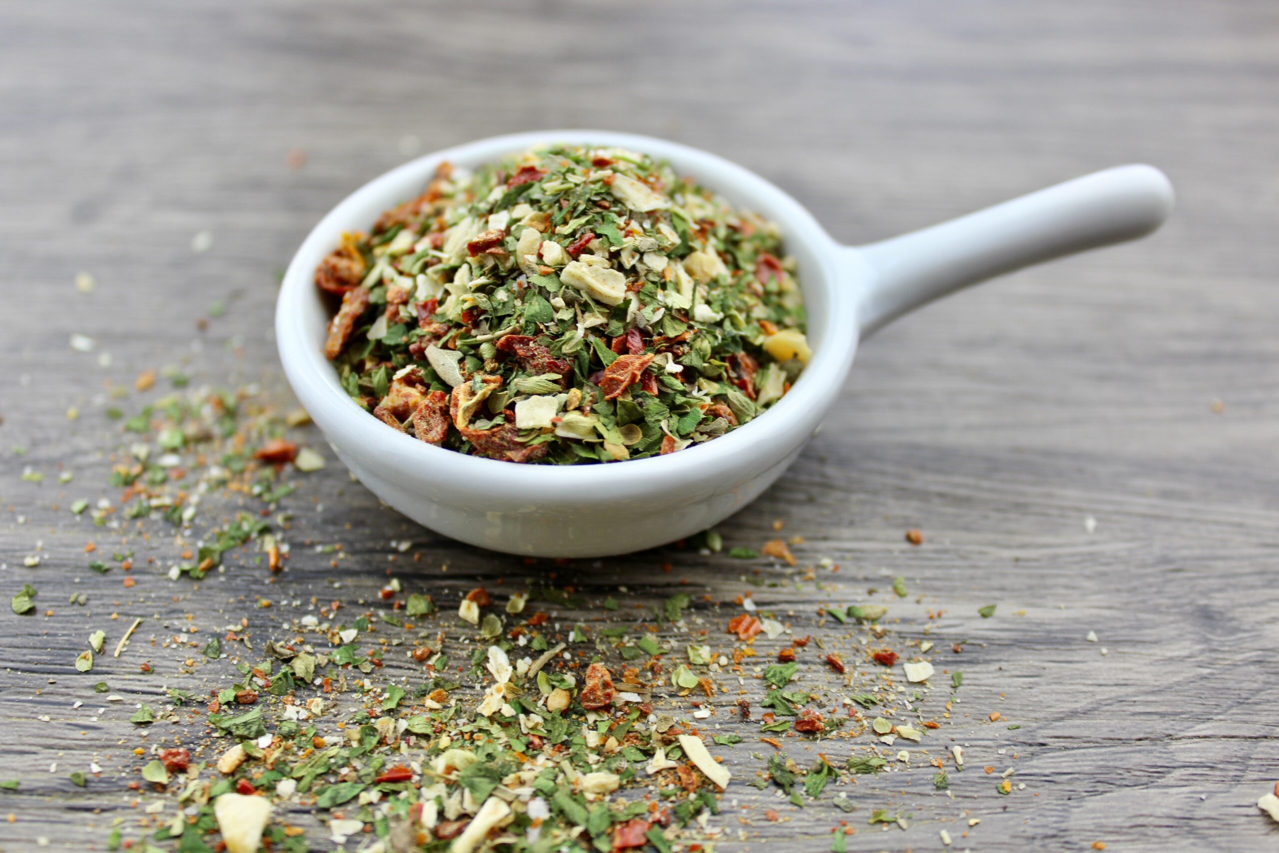 Zusammensetzung : Tomatenflocken, Zwiebeln, Petersilie, Knoblauch, Oregano, Basilikum, Pfeffer, 65 g